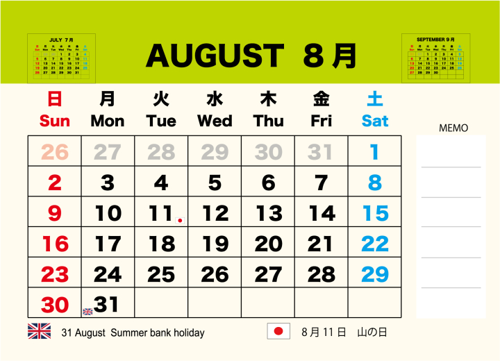 日英の祭日がひとめでわかる便利な卓上カレンダー!